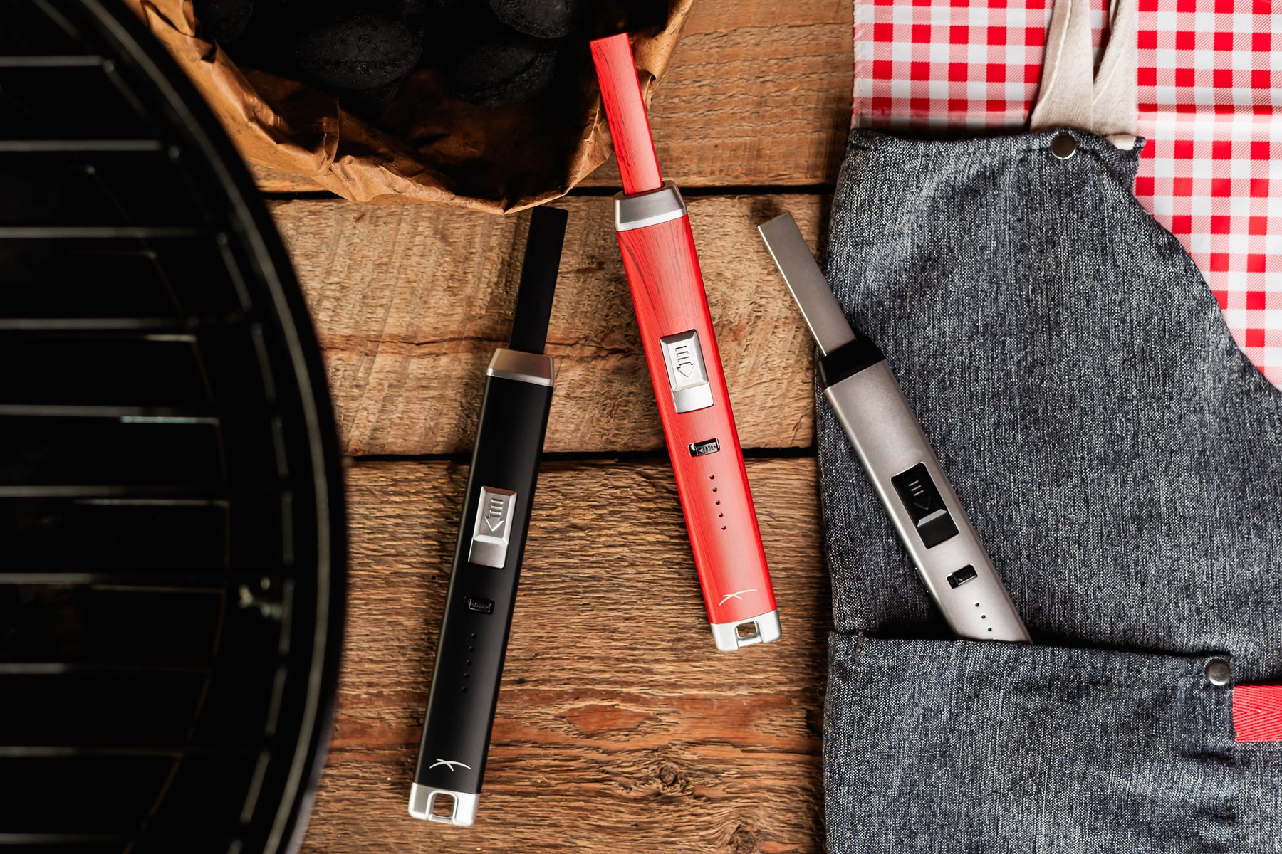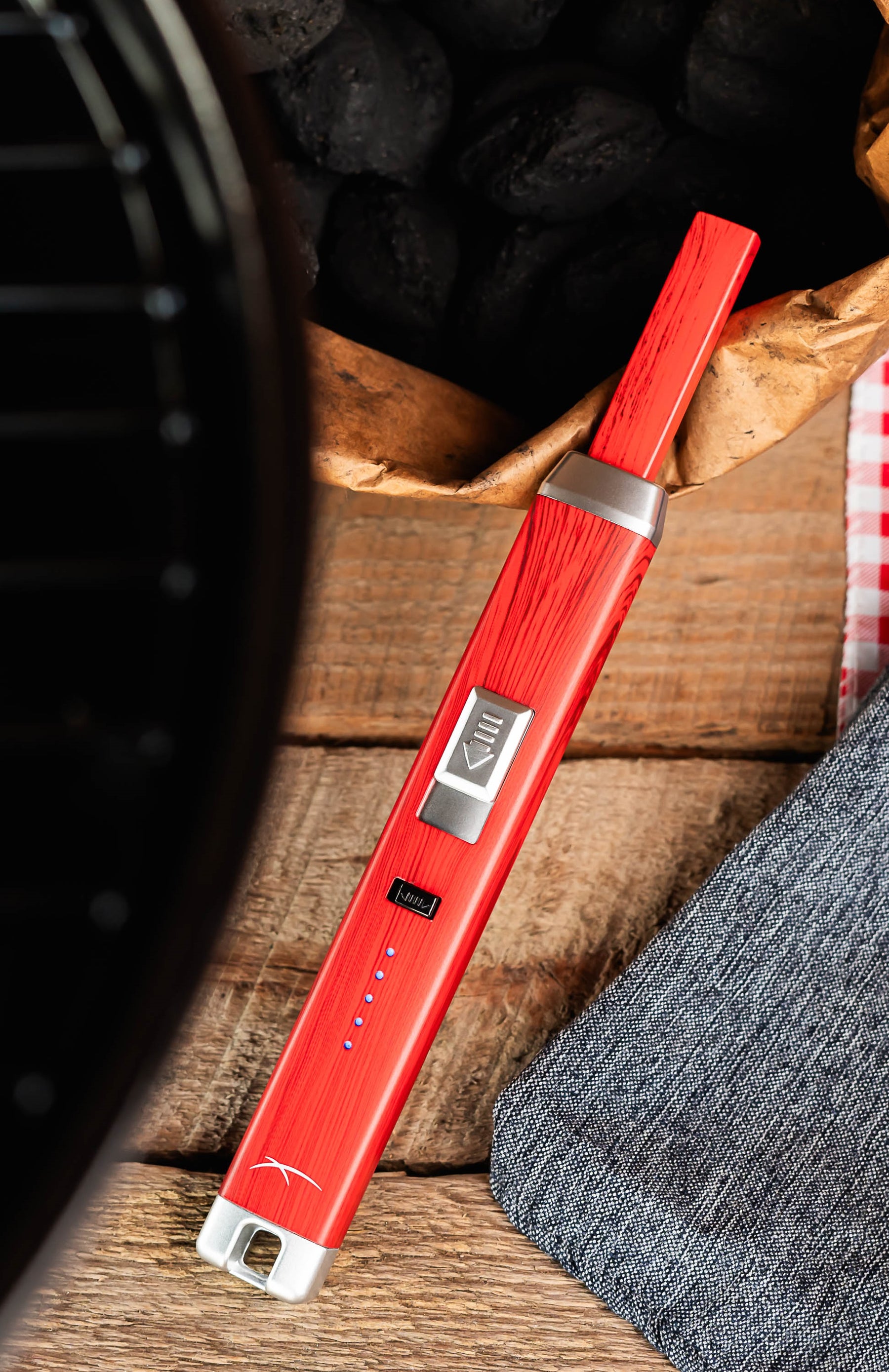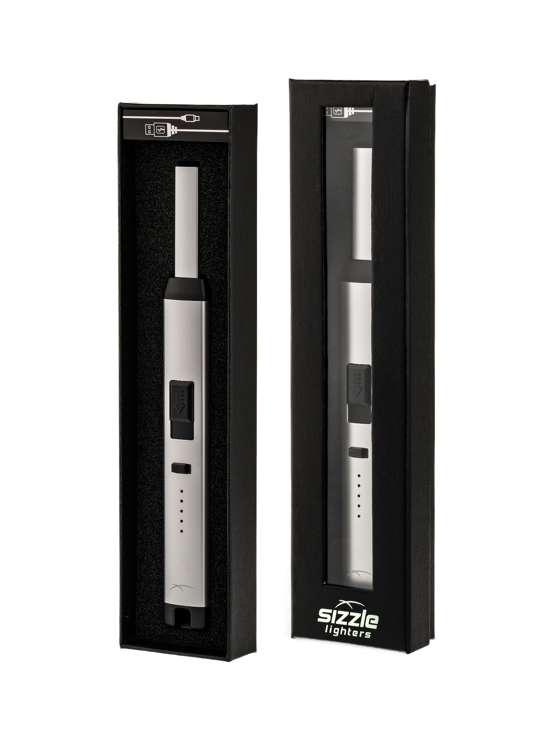 The Sizzle Pitmaster is engineered as an all-purpose lighter for indoor/outdoor use. Easily ignite fire pits, lanterns, torches, tealights and candles. Create your own illuminating environment. Available in Black, Silver, Brown, Red Wood, Teal, Pink and Aloe. USB charge cord included.