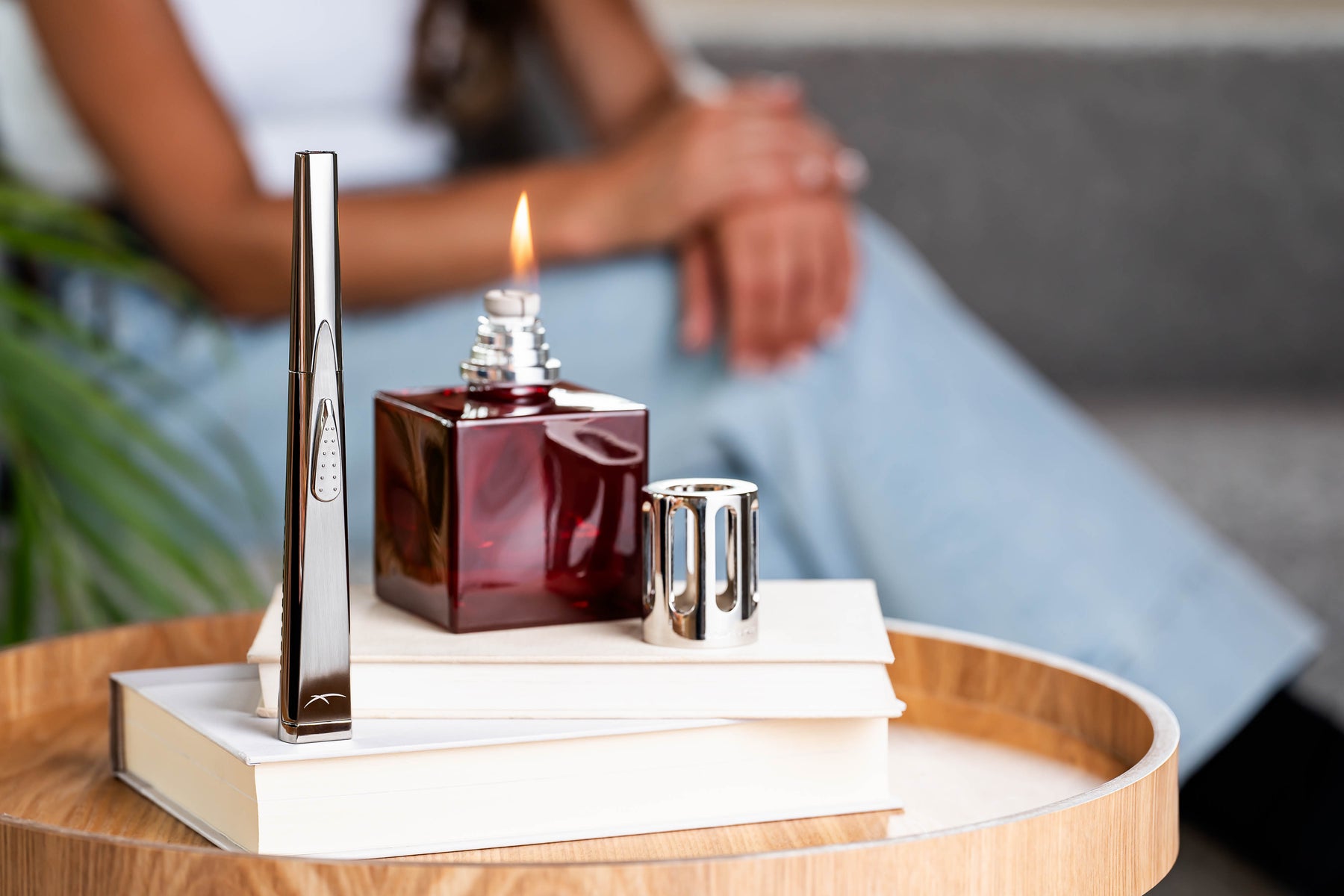 Choose from silver, pewter or rose gold metallic finishes. Display your Sizzle Sleek lighter with existing décor on a table or mantle. Designed to lay on its side or stand upright. Feel confident lighting candles set in deep vases or table settings with long stem candles. USB charge cord included.