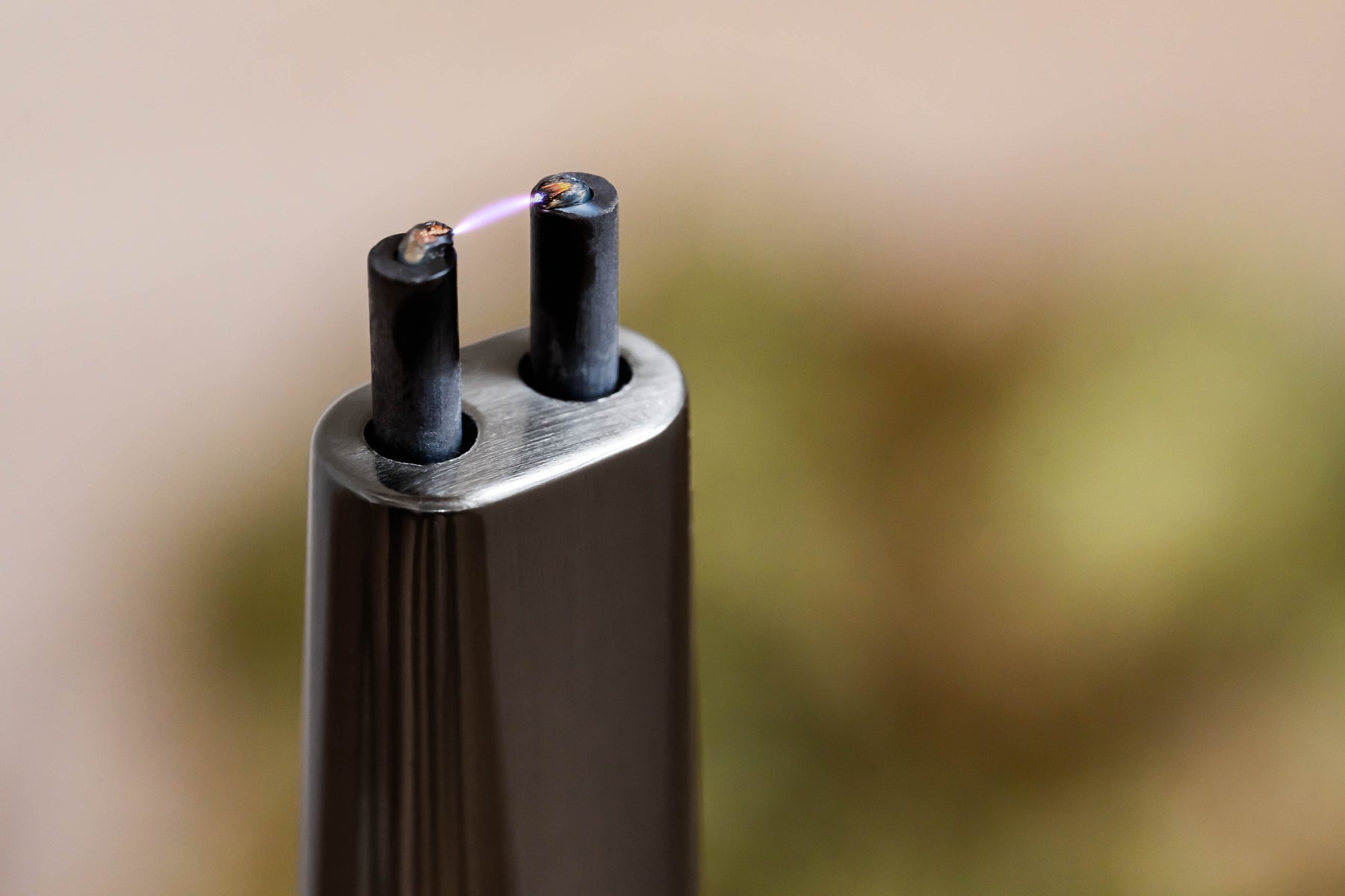 The Sizzle Sleek feels as elegant and futuristic as it appears. Hold the metal alloy wand in your hand and feel the balance of weight. Nudge thumb forward on the switch to produce a bright and powerful concentrated arc ignition from its tip.